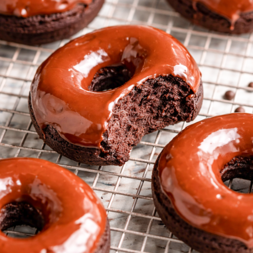 Dip the top of each cooled donut face down into the glaze, let any excess drip off, then place them glaze-side up on a sheet of parchment paper or back on the wire rack. Transfer to the fridge for 15 to 20 minutes to let the glaze set completely before serving.