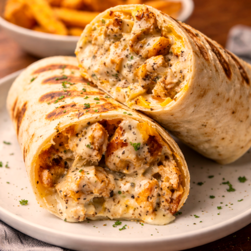 High Protein Cheesy Garlic Chicken Wraps