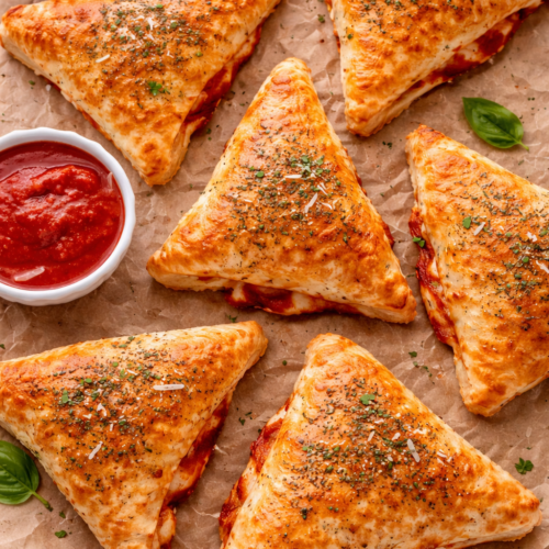 These golden, crispy little triangles are stuffed with melty mozzarella and pizza sauce and each one packs over 20 grams of protein from a two-ingredient Greek yogurt dough that takes about 10 minutes to put together. They’re ready in under 30 minutes and work perfectly for meal prep.